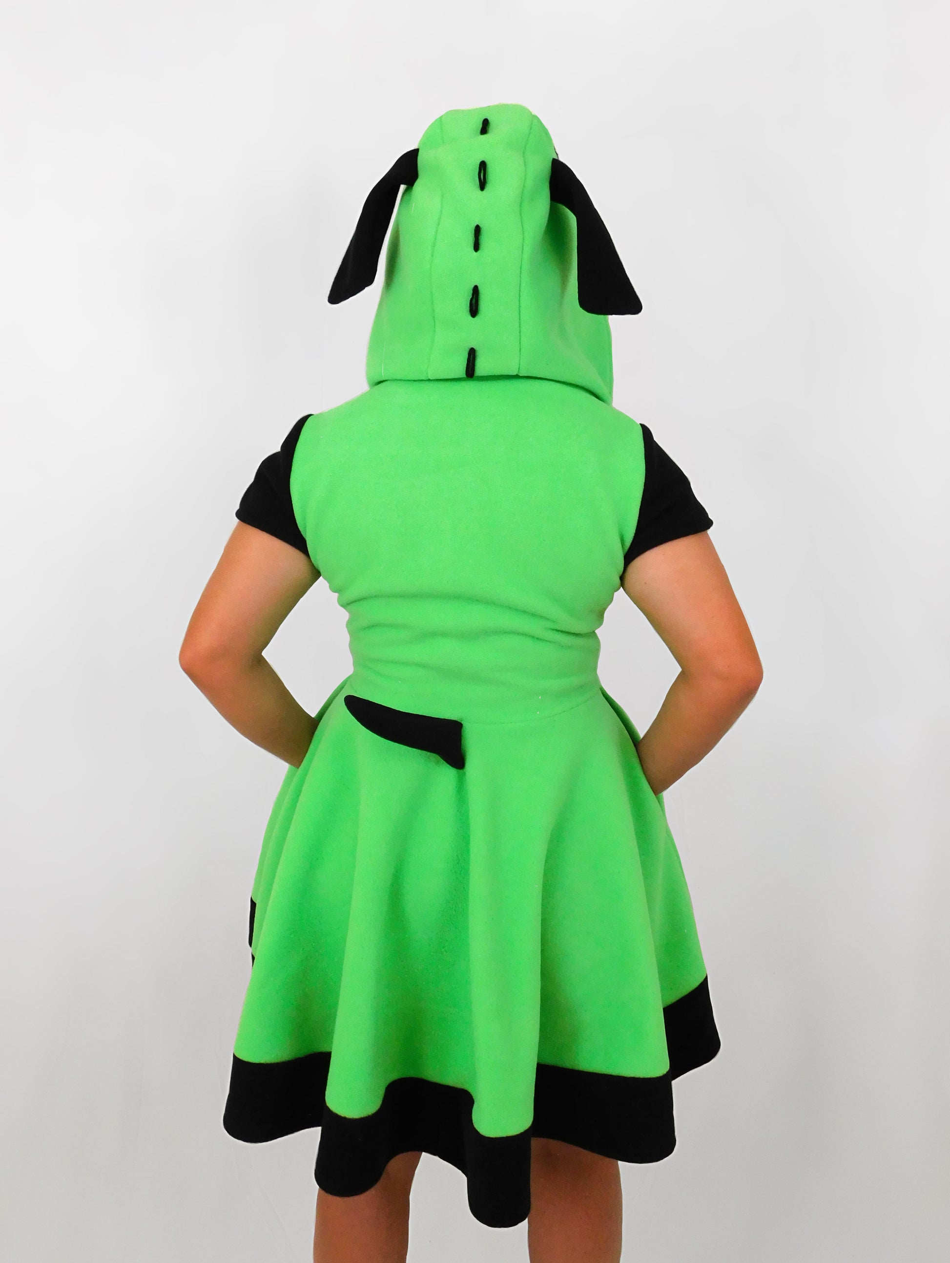 Sing along to the Doom song in this adorable Gir-inspired kigurumi dress from Invader Zim! This handmade dress is perfect for a casual cosplay, Halloween parties, conventions, or for pajamas at home! This custom item is made with high-quality anti-pill fleece, and it can be made to your measurements.