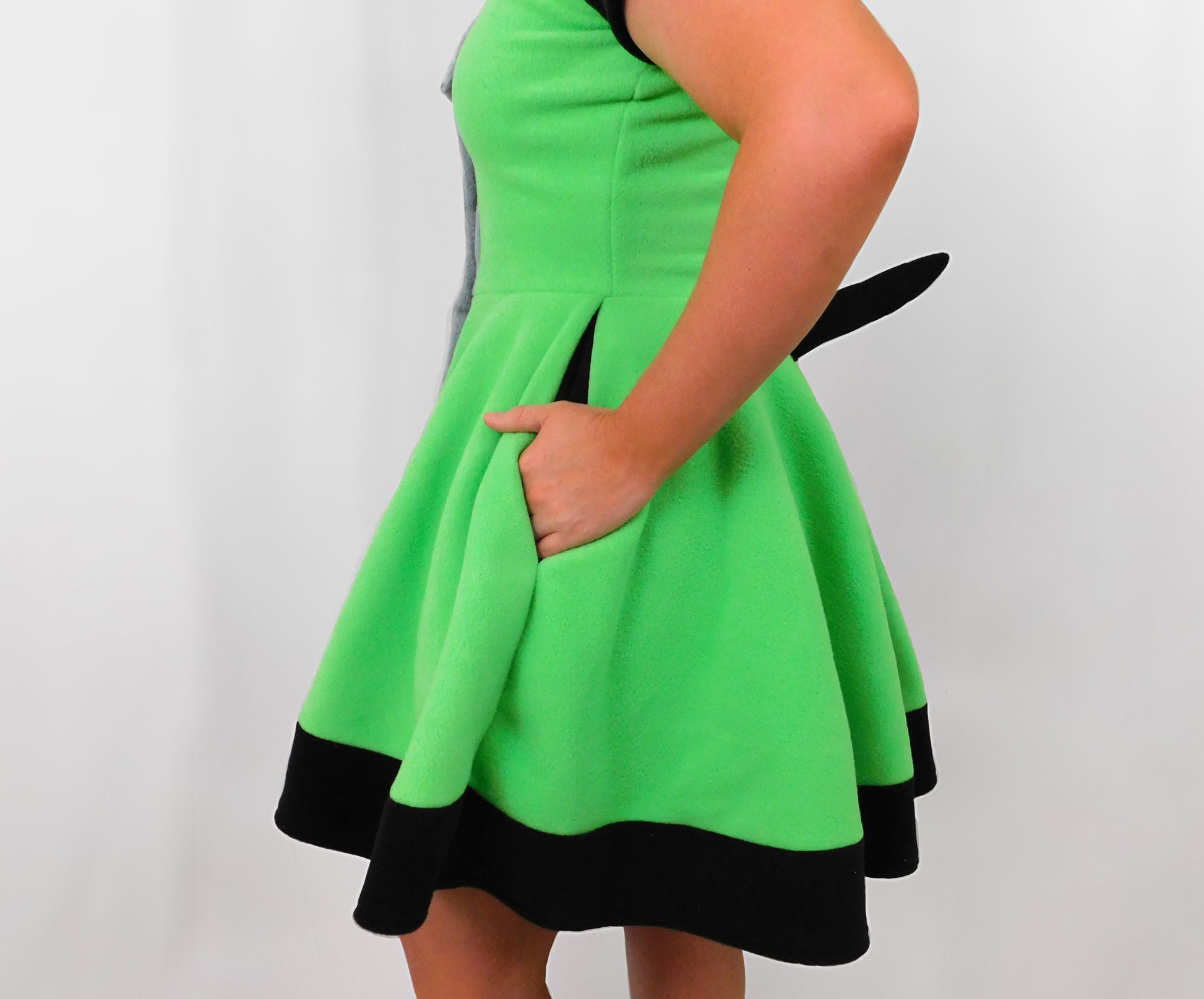 All of our kigurumis are made from premium anti-pill fleece. It’s ultra plush, ultra fluffy, and made to not only look amazing, but keep you comfy and cozy the whole time you are wearing it. The bodice of the dress is designed to be form-fitting with a bit of breathing room, and the full circle skirt accentuates your waistline while also allowing for full range of movement. This dress also includes generously-sized pockets, perfect for carrying necessities, gaming consoles, snacks, and more.