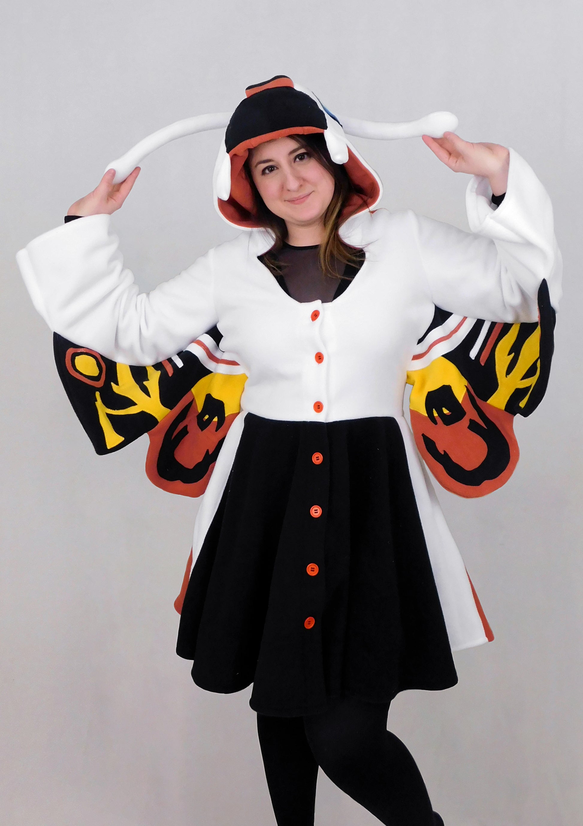 Cosplay in comfort in this fleece Mothra dress, inspired by the character from the Godzilla franchise! This handmade kaiju dress is perfect for a casual cosplay, Halloween parties, conventions, or for pajamas at home. You can order it with or without wings. This custom item is made with high-quality anti-pill fleece, and it can be made to your measurements.
