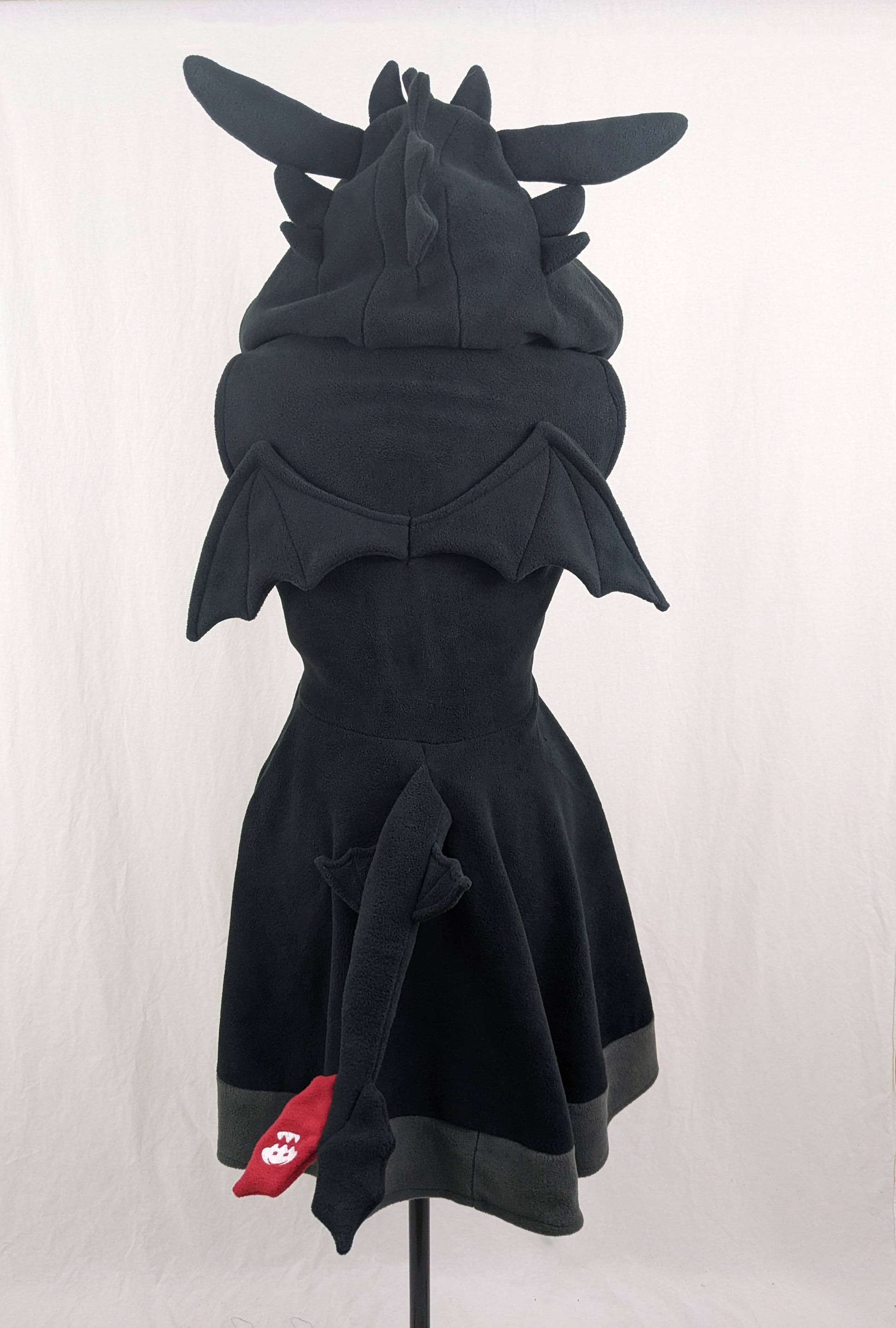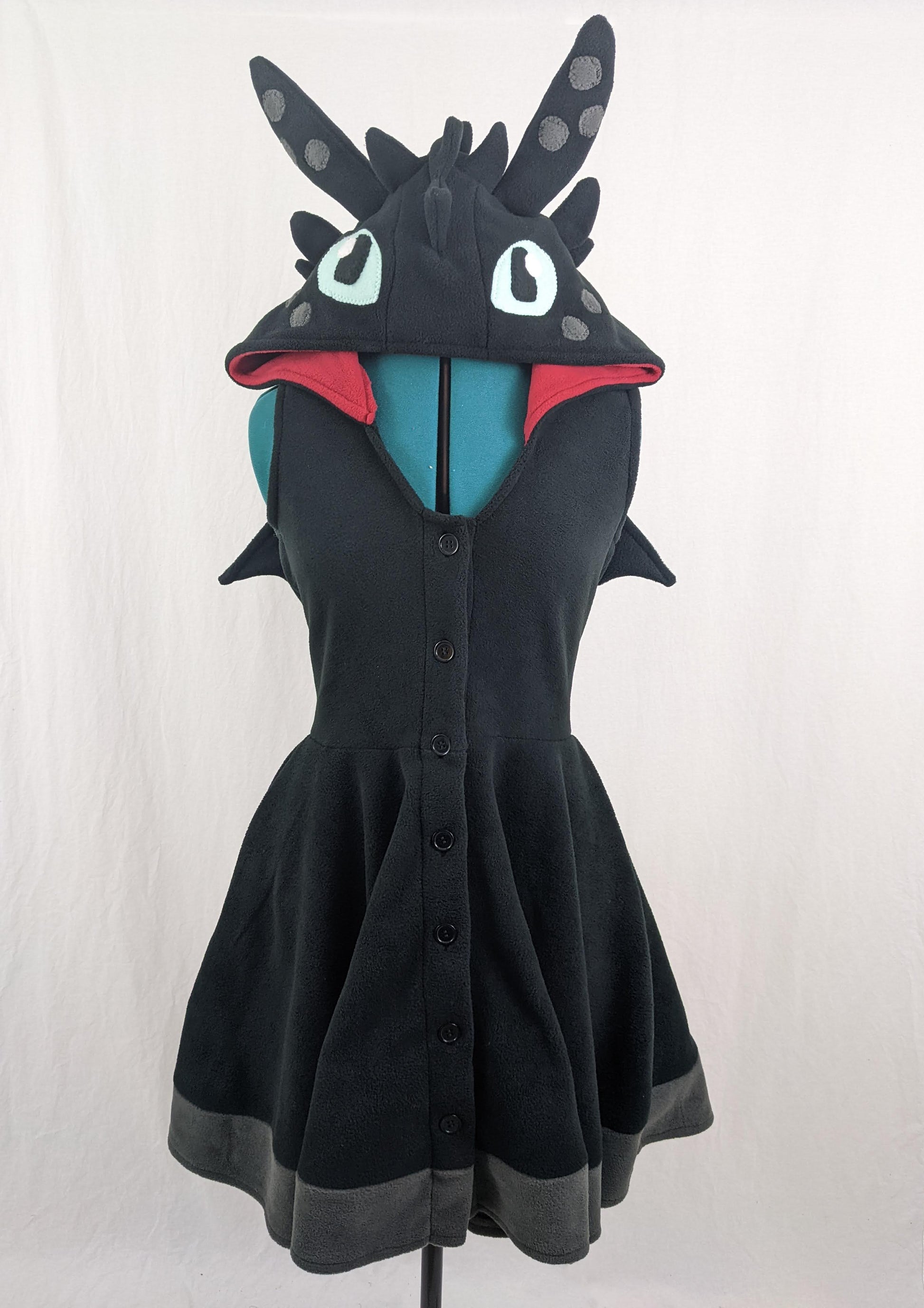 Cosplay in comfort with this super-cute black dragon dress, inspired by Toothless! This handmade dress is perfect for a casual cosplay, geeky conventions, Halloween parties, or for pajamas at home.
