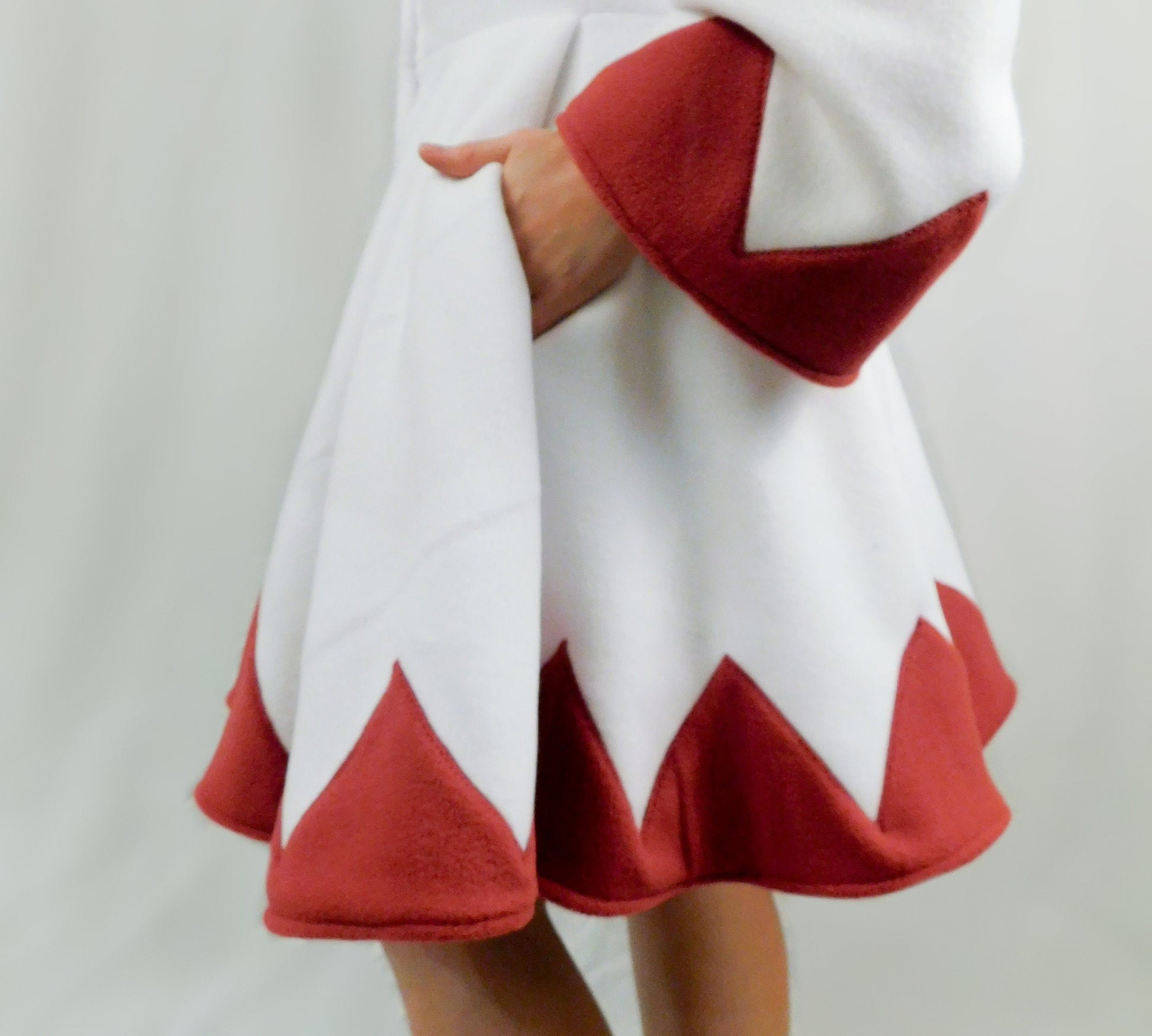 All of our kigurumis are made from premium anti-pill fleece. It’s ultra plush, ultra fluffy, and made to not only look amazing, but keep you comfy and cozy the whole time you are wearing it. The bodice of the dress is designed to be form-fitting with a bit of breathing room, and the full circle skirt accentuates your waistline while also allowing for full range of movement. This dress also includes generously-sized pockets, perfect for carrying necessities, gaming consoles, snacks, and more.
